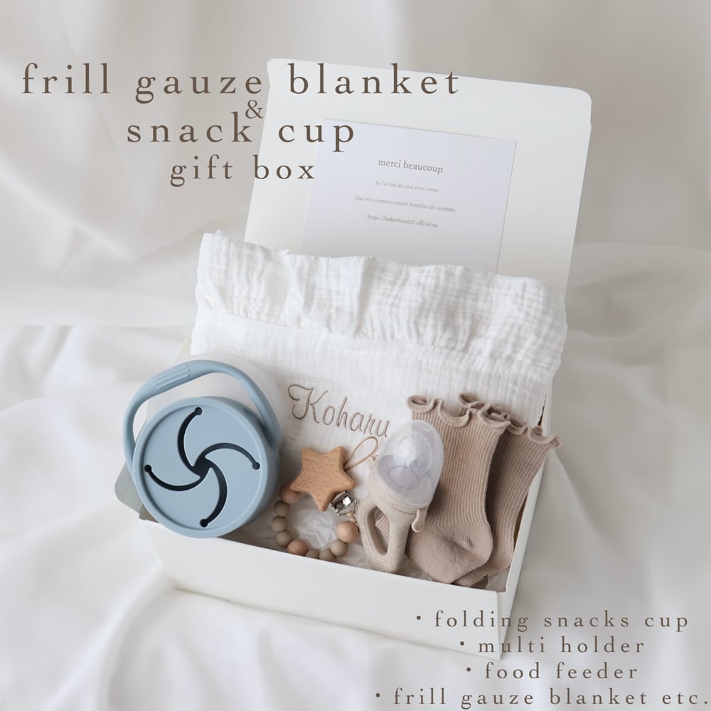 natsumiさま専用 出産祝いギフトセット5set blue Blanket & snack cup ブランケット星ホルダー名入れ無料