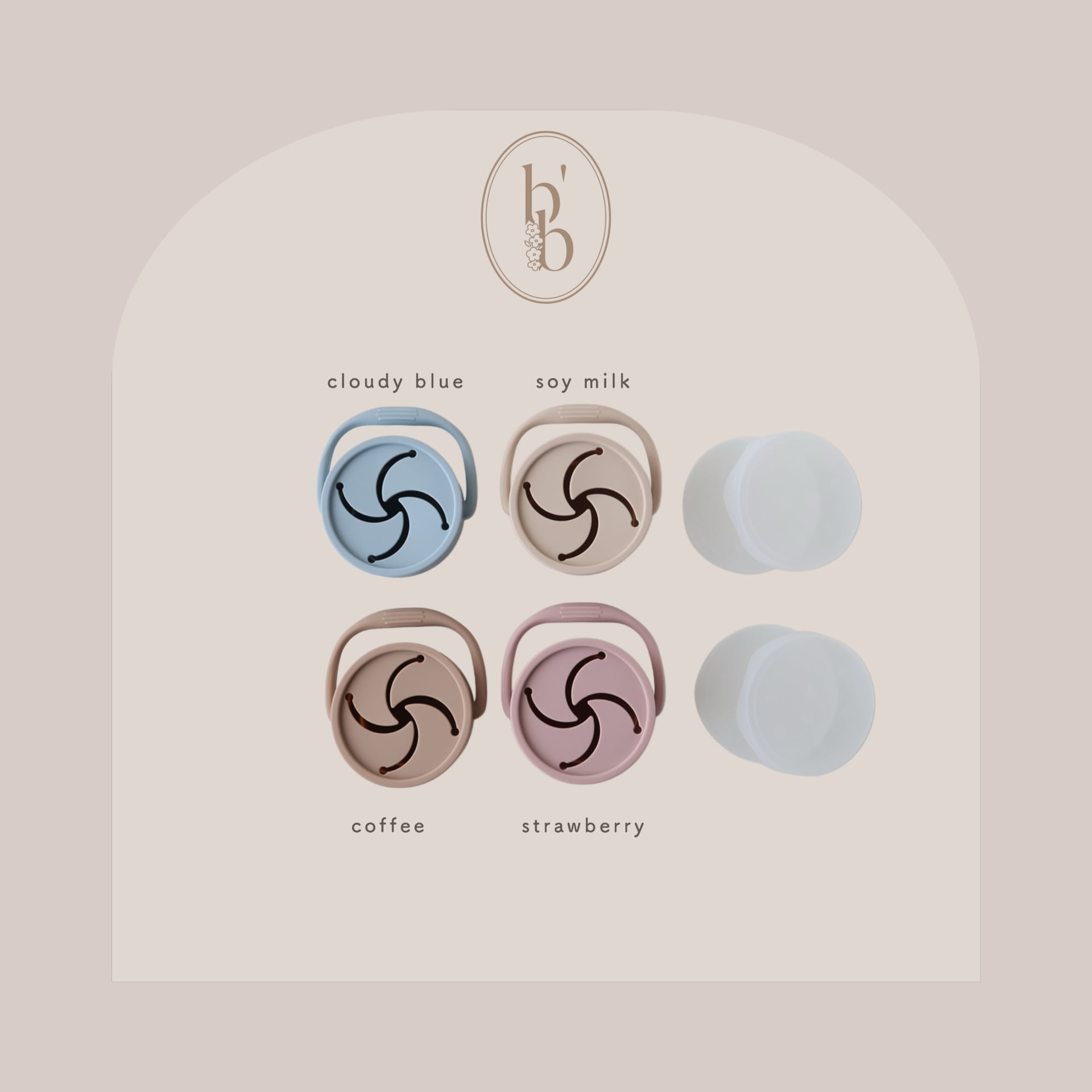 持ち歩きに便利なしっかり閉まるフタ付き、コンパクトに畳んで収納できてお出かけにもぴったり⟡.·